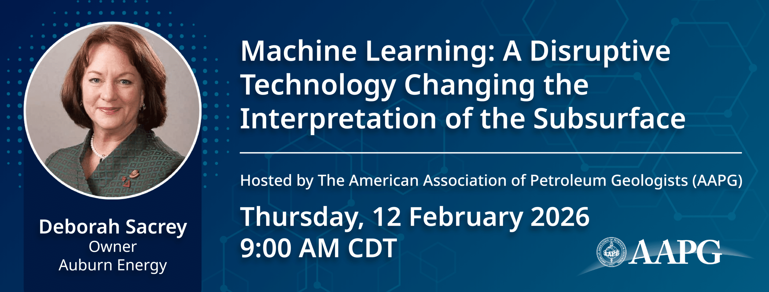 Renowned geoscientist Deborah Sacrey, founder of Auburn Energy and collaborator with Geophysical Insights, will present “Machine Learning: A Disruptive Technology Changing the Interpretation of the Sub-surface” as an AAPG webinar.